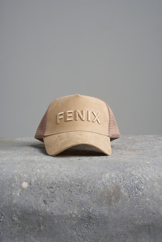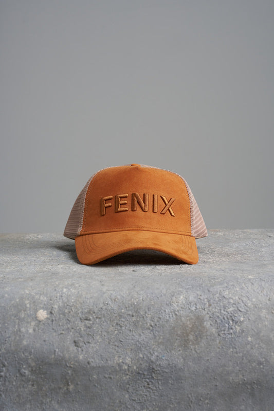 BURNT ORANGE/CREAM SUEDE TRUCKER HAT